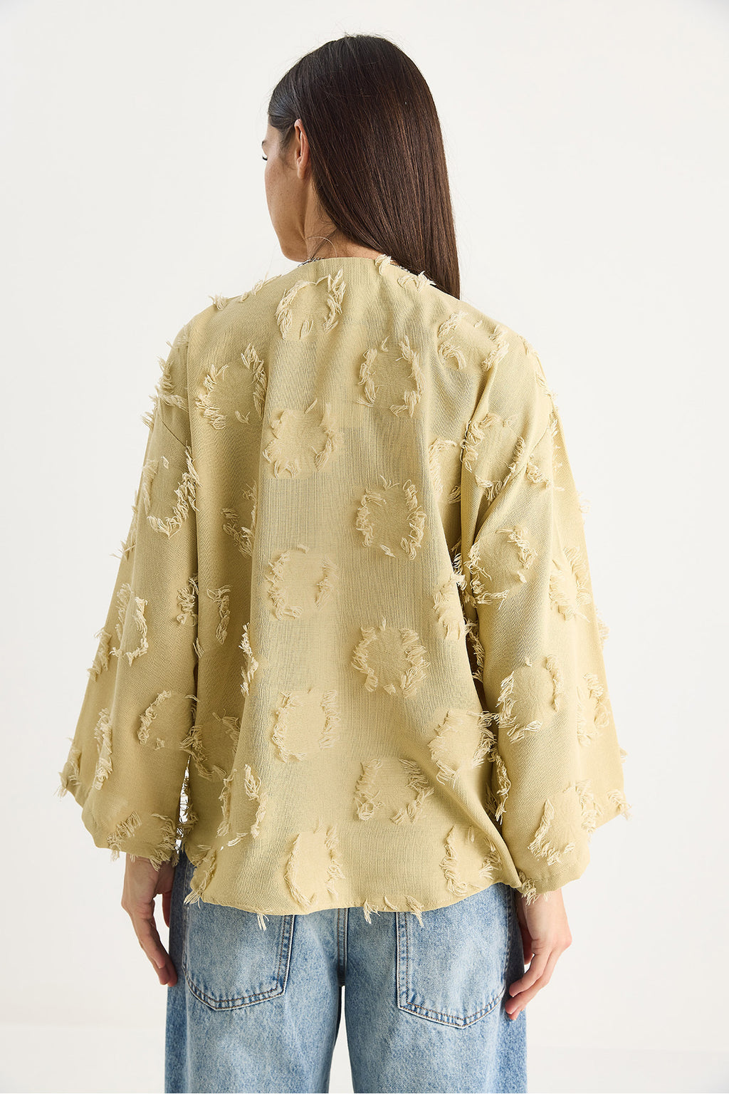Women's Tie-Front, Self-Embroidered Tasseled Loose Kimono 7012-2 60283410