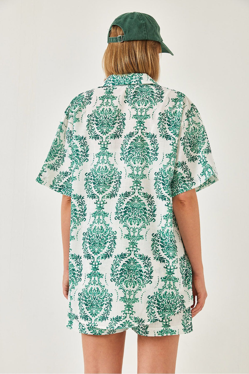 Women's tropical patterned weaving shirt shorts upset team 60255 60271035