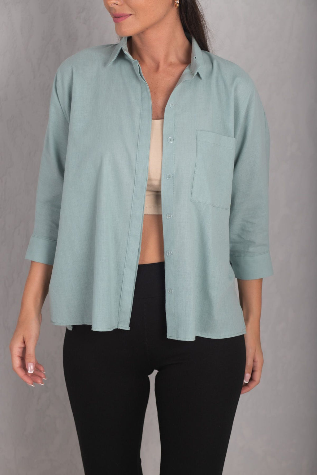 Women's Turquoise POCKET SALAŞ LINEN SHIRT ARM-21Y001035