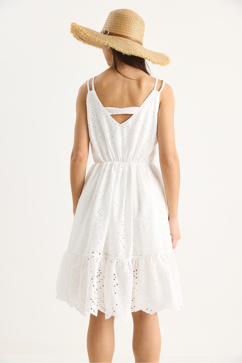Women's V-Neck Back Detailed Lined Skirt Flared Brode Dress 5244 60281067