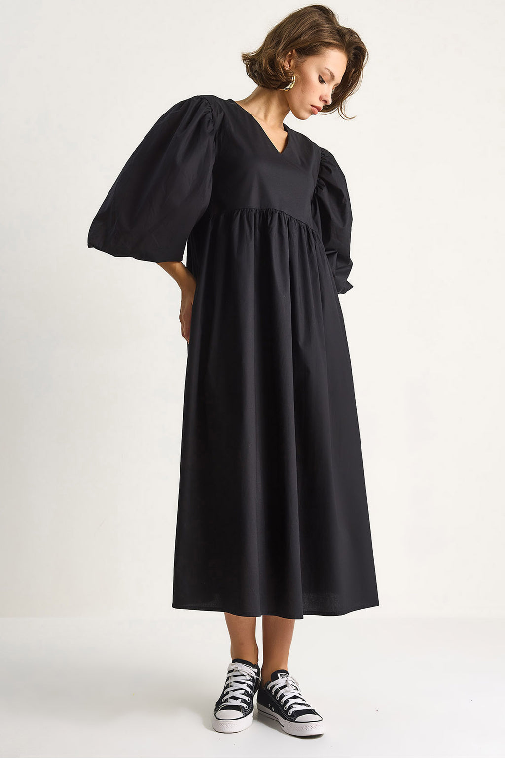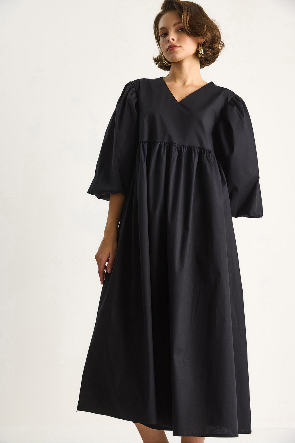 Women's V-Neck Balloon Sleeve Long Dress 60284071