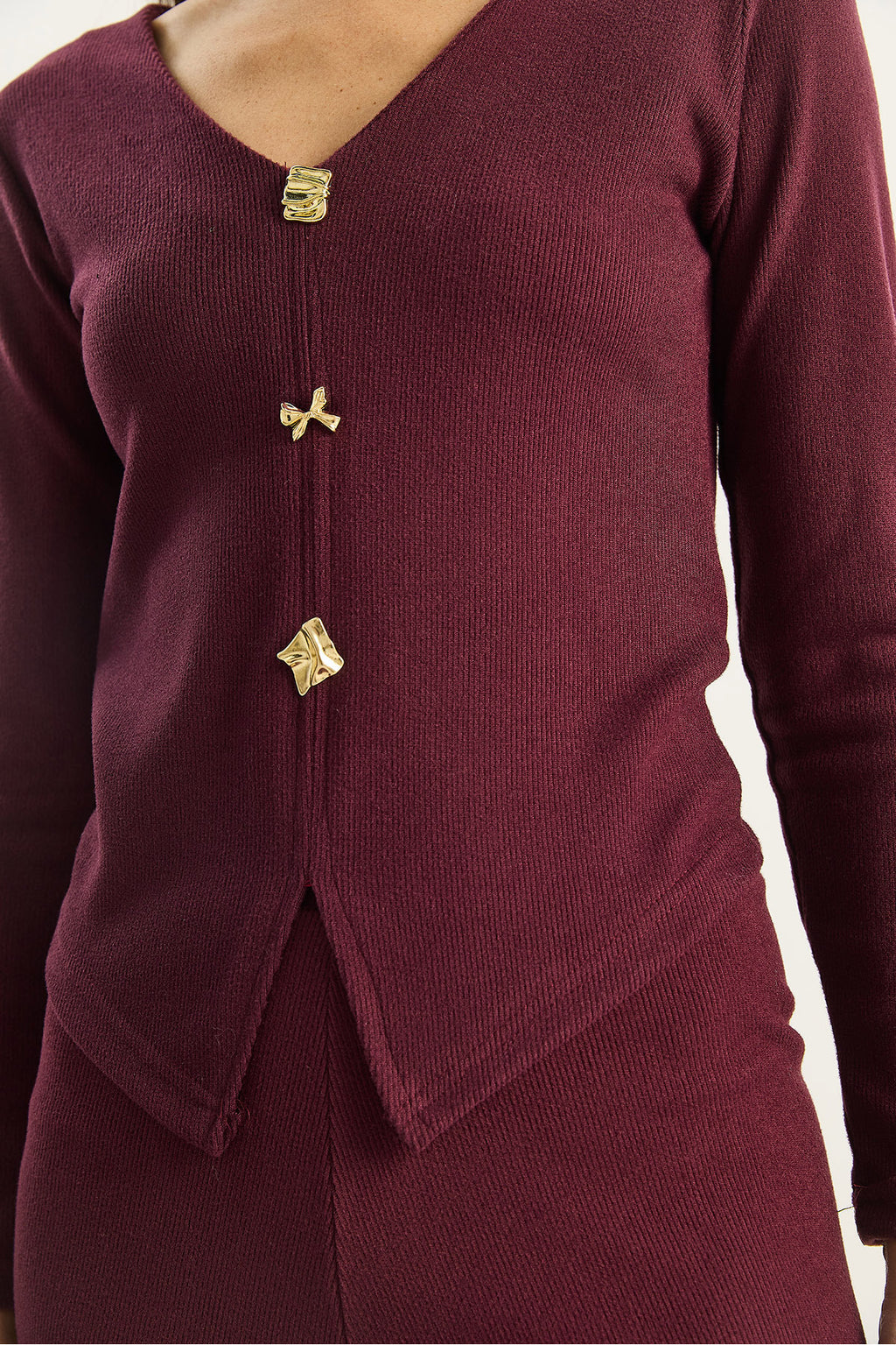 Women's V-Neck Button Accessory Selanik Bottom-Top Set 4107 60283782