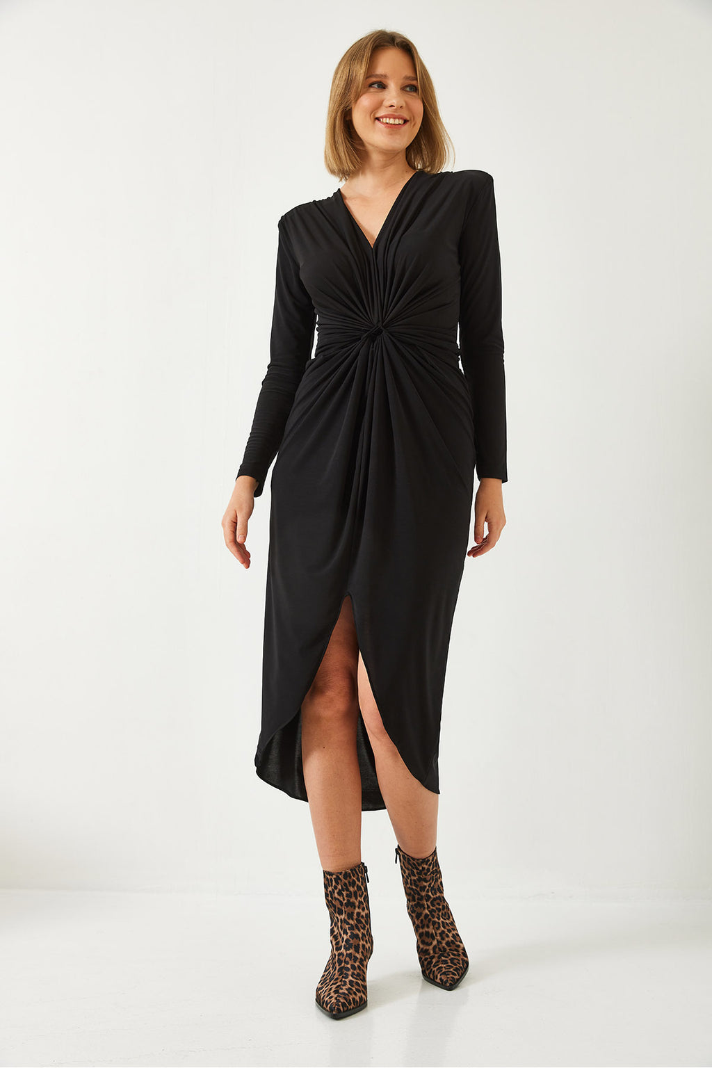 Women's V-neck Gathered Front Candy Fabric Dress 4411 60261154