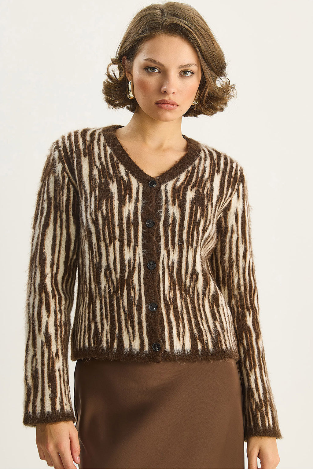 Women's V-Neck Patterned Rose Gold Cardigan 9066 60283637