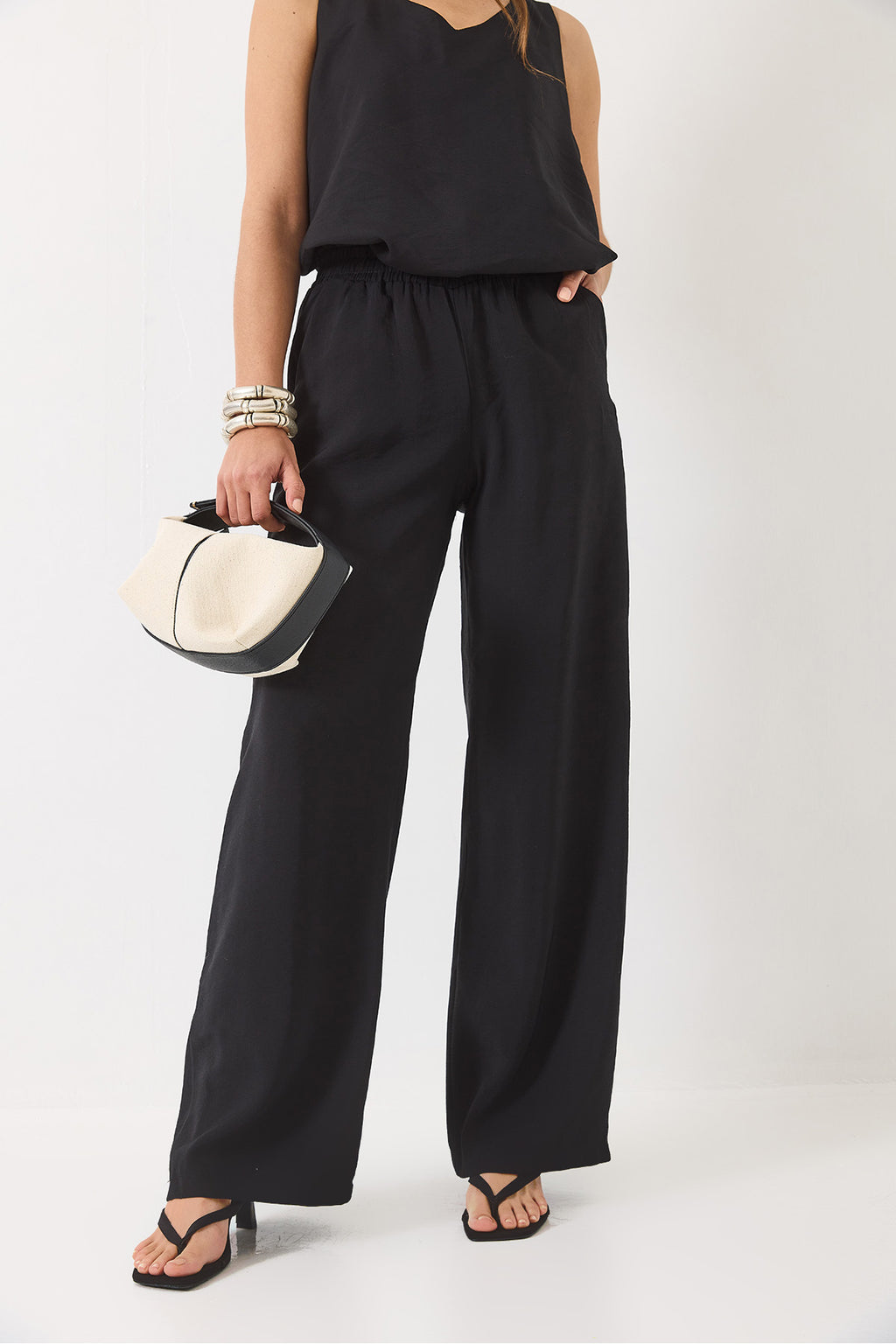 Women's V-Neck Strap Blouse Palazzo Trousers Bottom-Top Set 3142 60283115