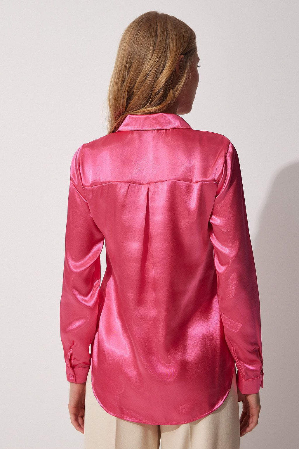 WOMEN'S VIEW Pink Lightly Casting Satin Surface Shirt DD00990