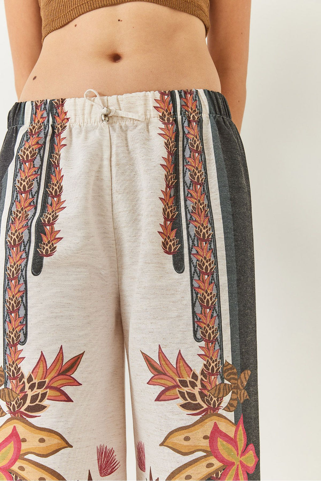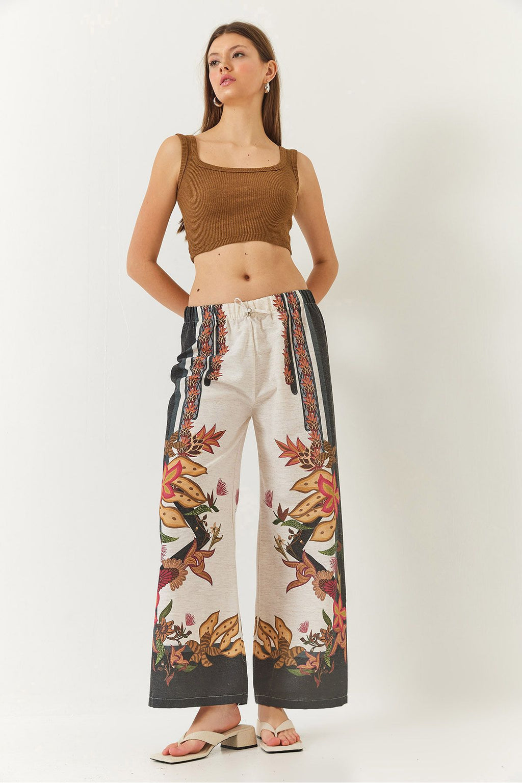 Women's waist rubber baglama detailed patterned palazzo pants 60261416
