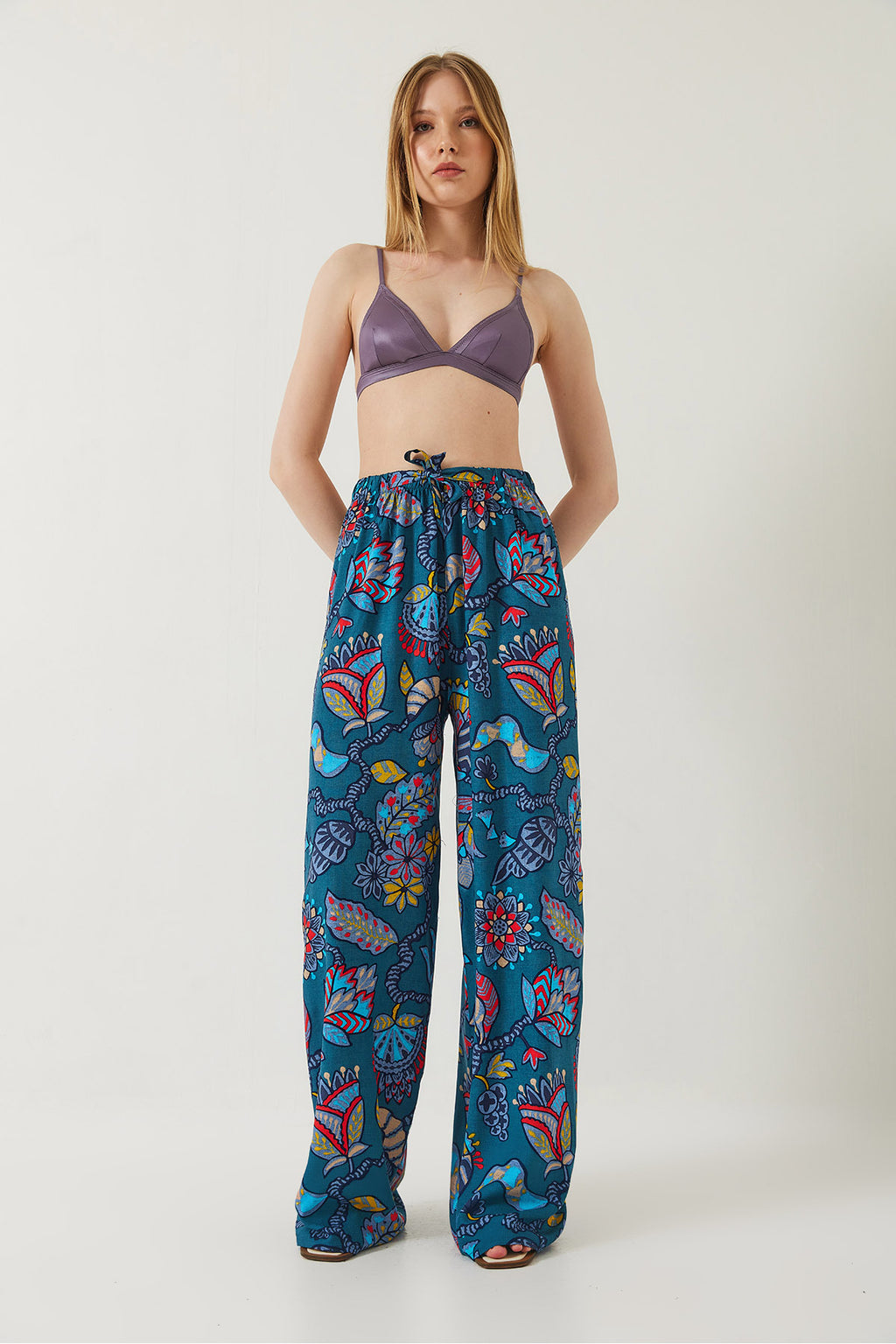 Women's Waist Tied Patterned Viscose Trousers 60261354