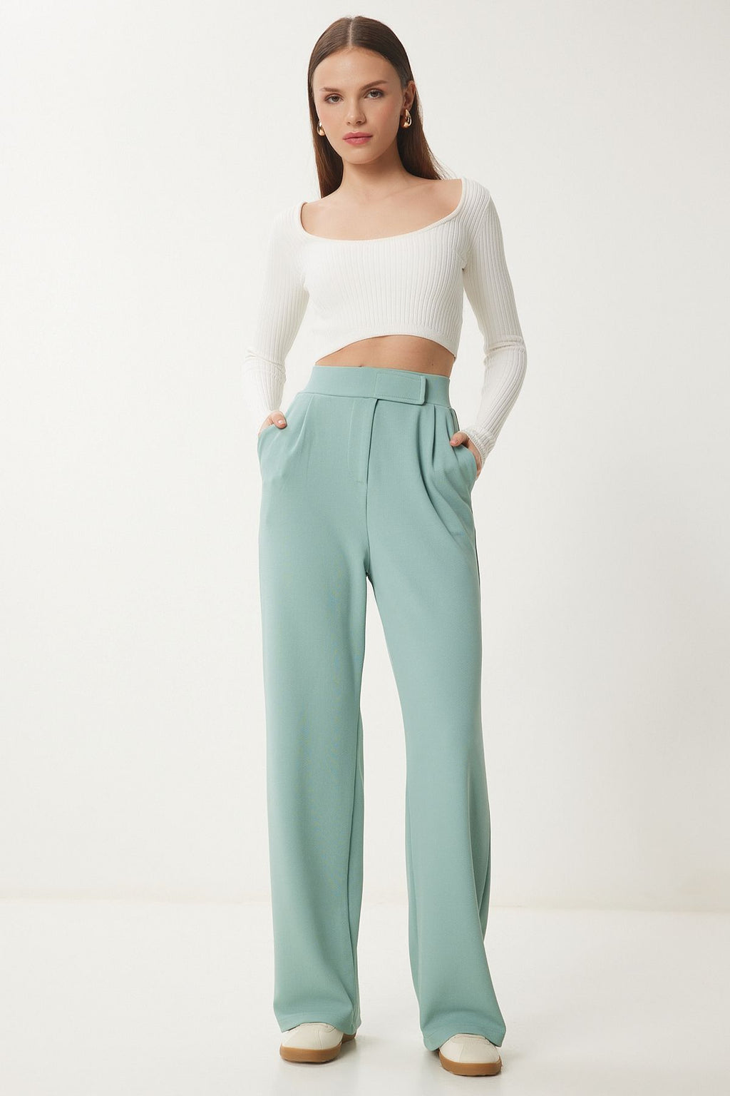 WOMEN'S WATER GREEN WAST WAST CAUTION CASHING WOOD Pants RV00150