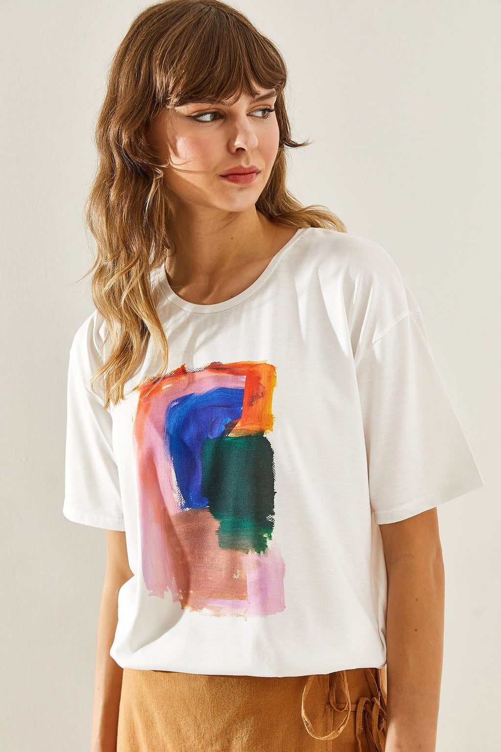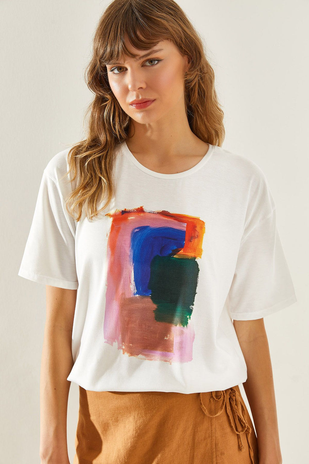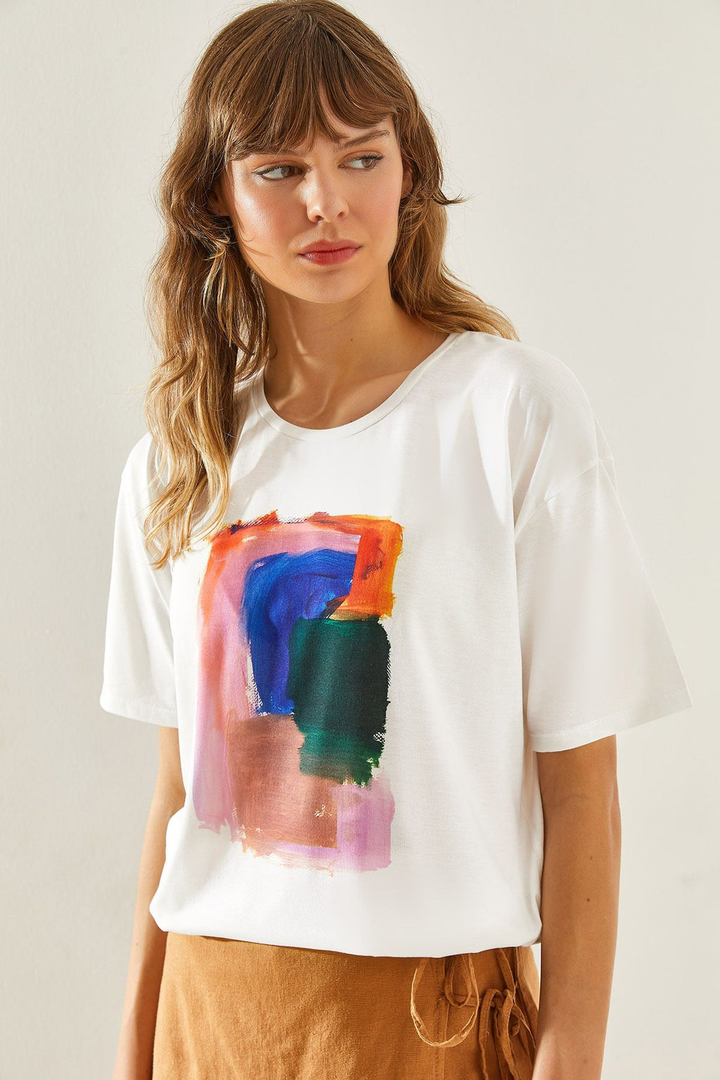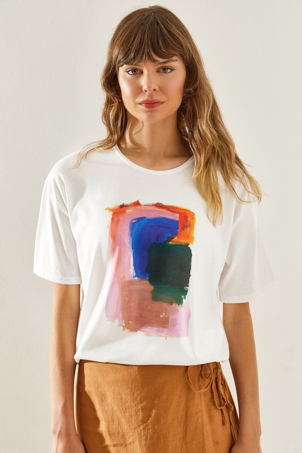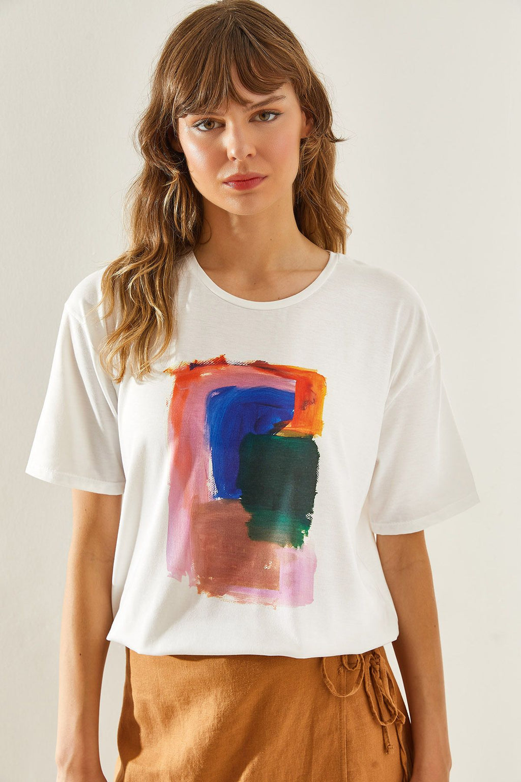 WOMEN'S Watercolor Patterned Short Sleeve Basic T-Shirt 60251214