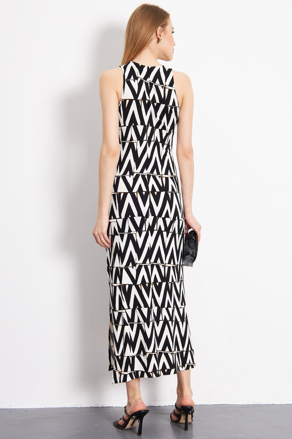 Women's White-Black Crew Neck Sleeveless Slit Long Dress ARM-23Y001090