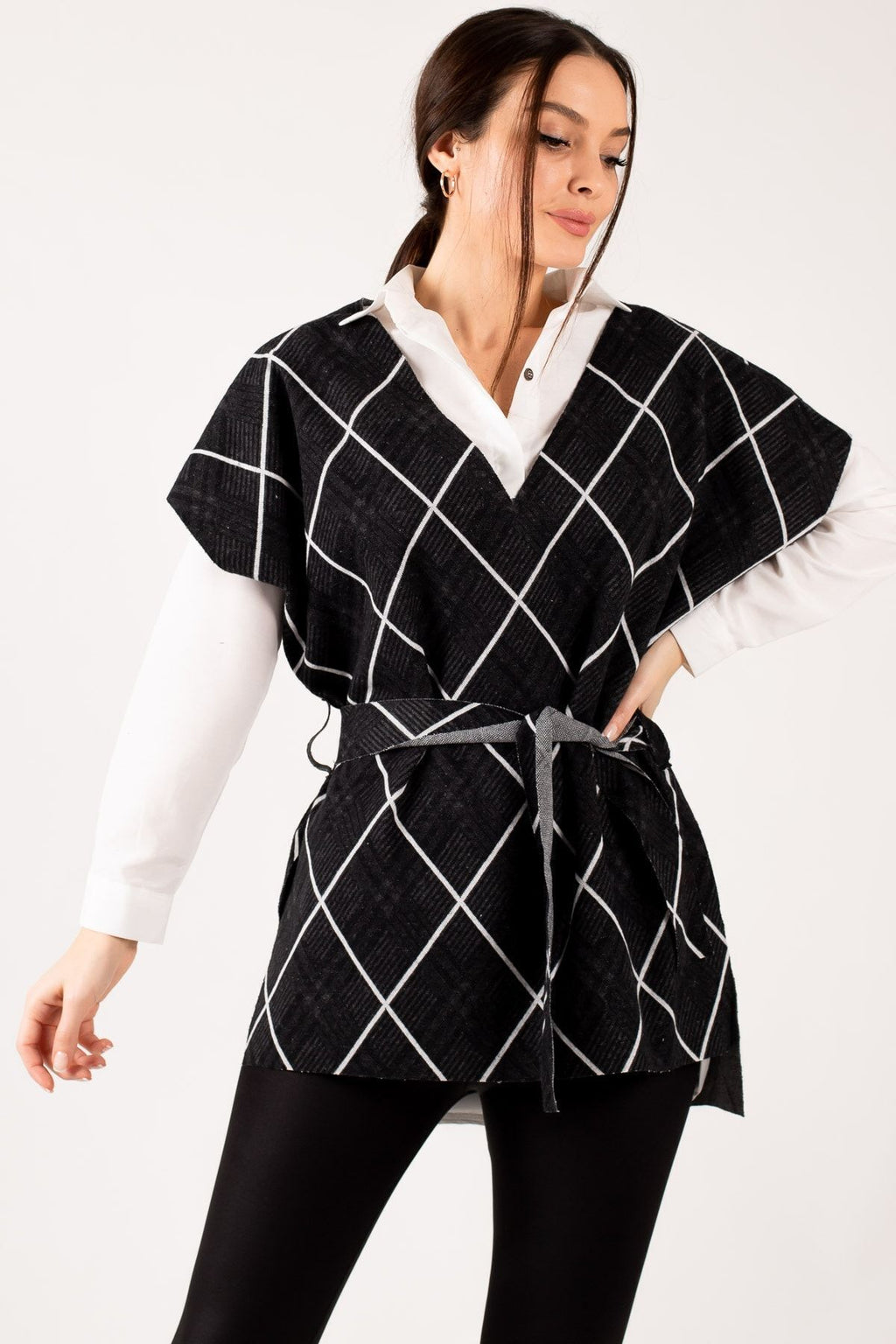 Women's White Tie Waist V-Neck Sweater ARM-21K001069