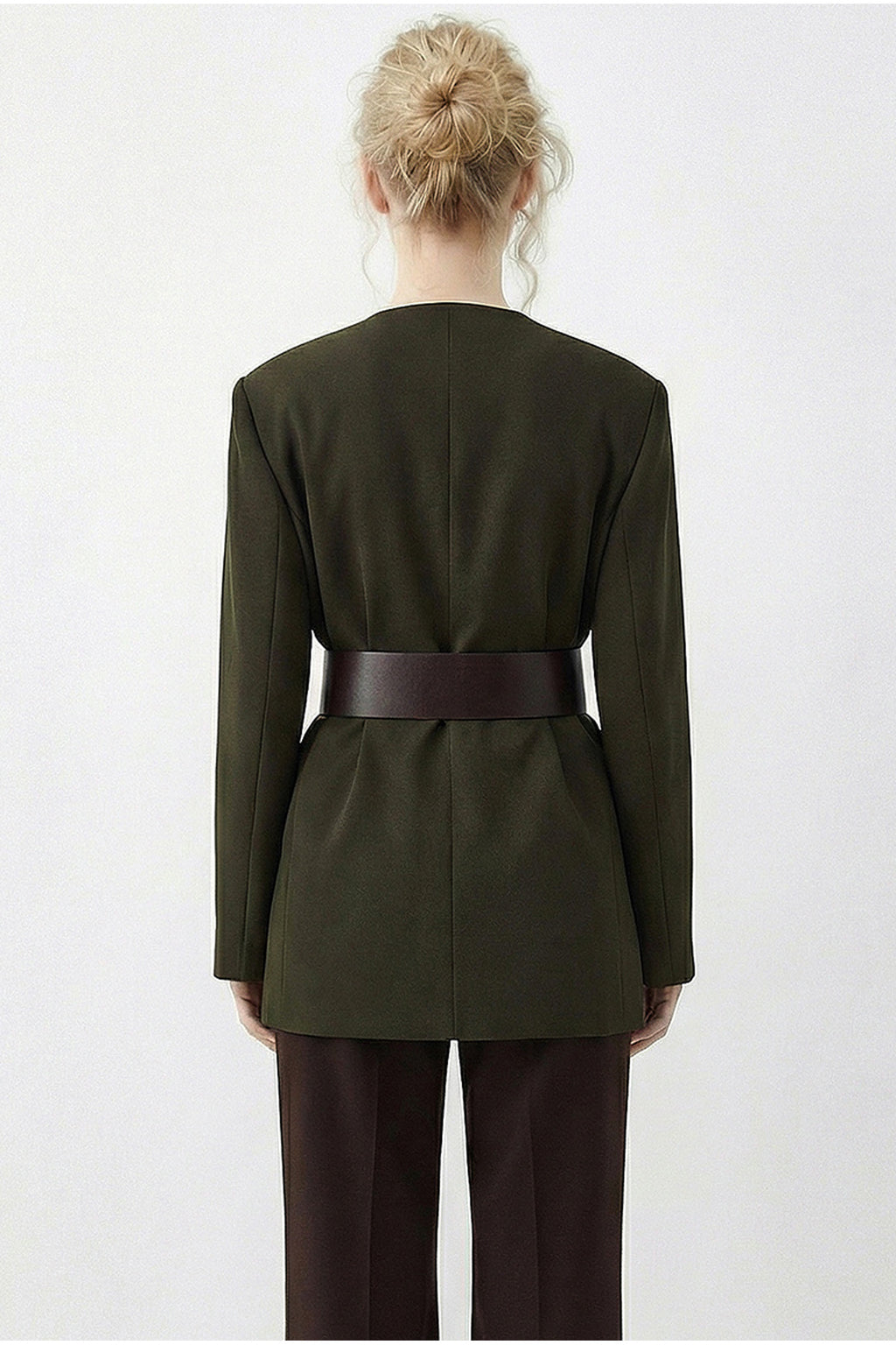 Women's Wide Belt Double Breasted Collar Lined Jacket 4169 60283989