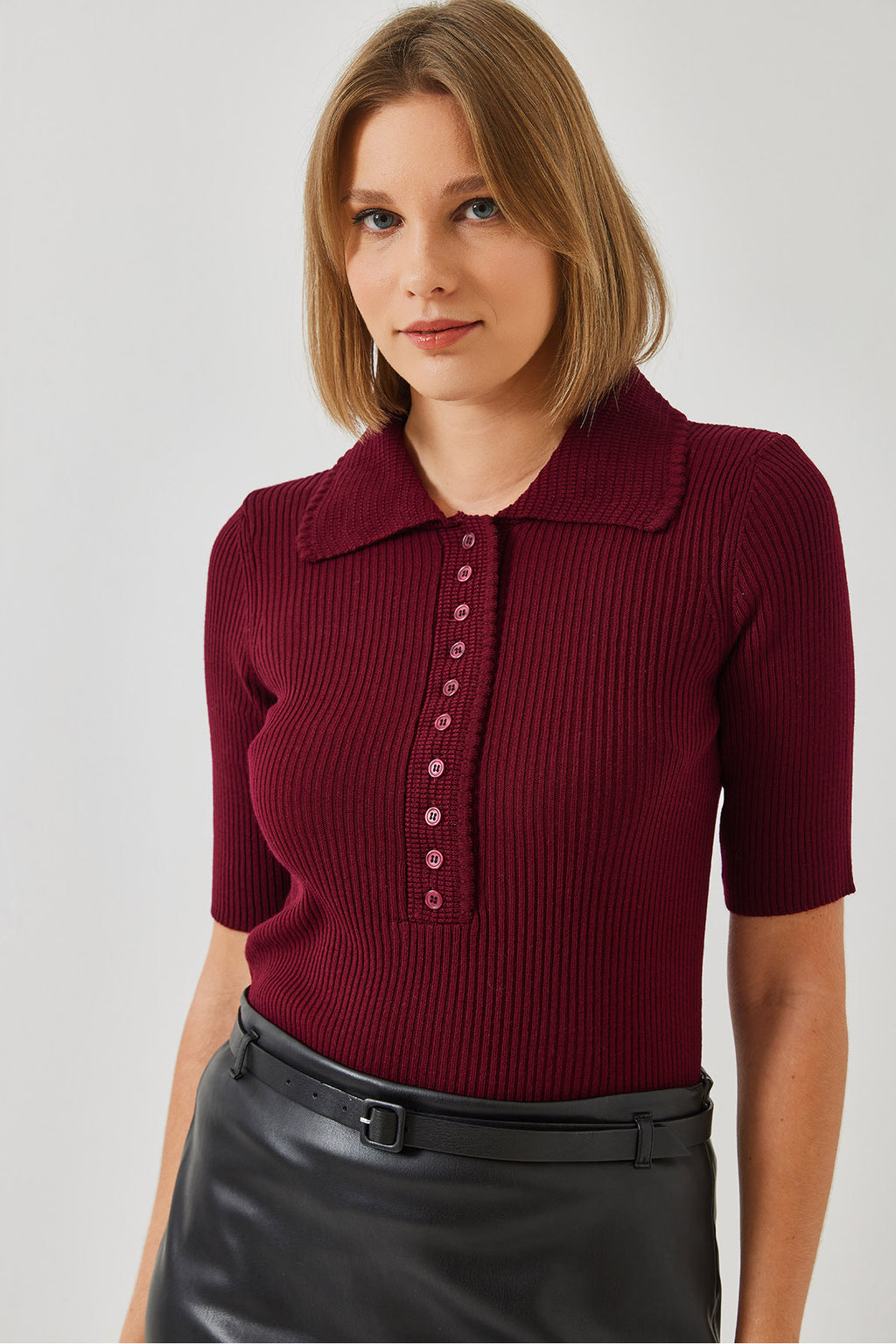 Women's Wide Collar Buttoned Placket Knitwear Sweater 20246251