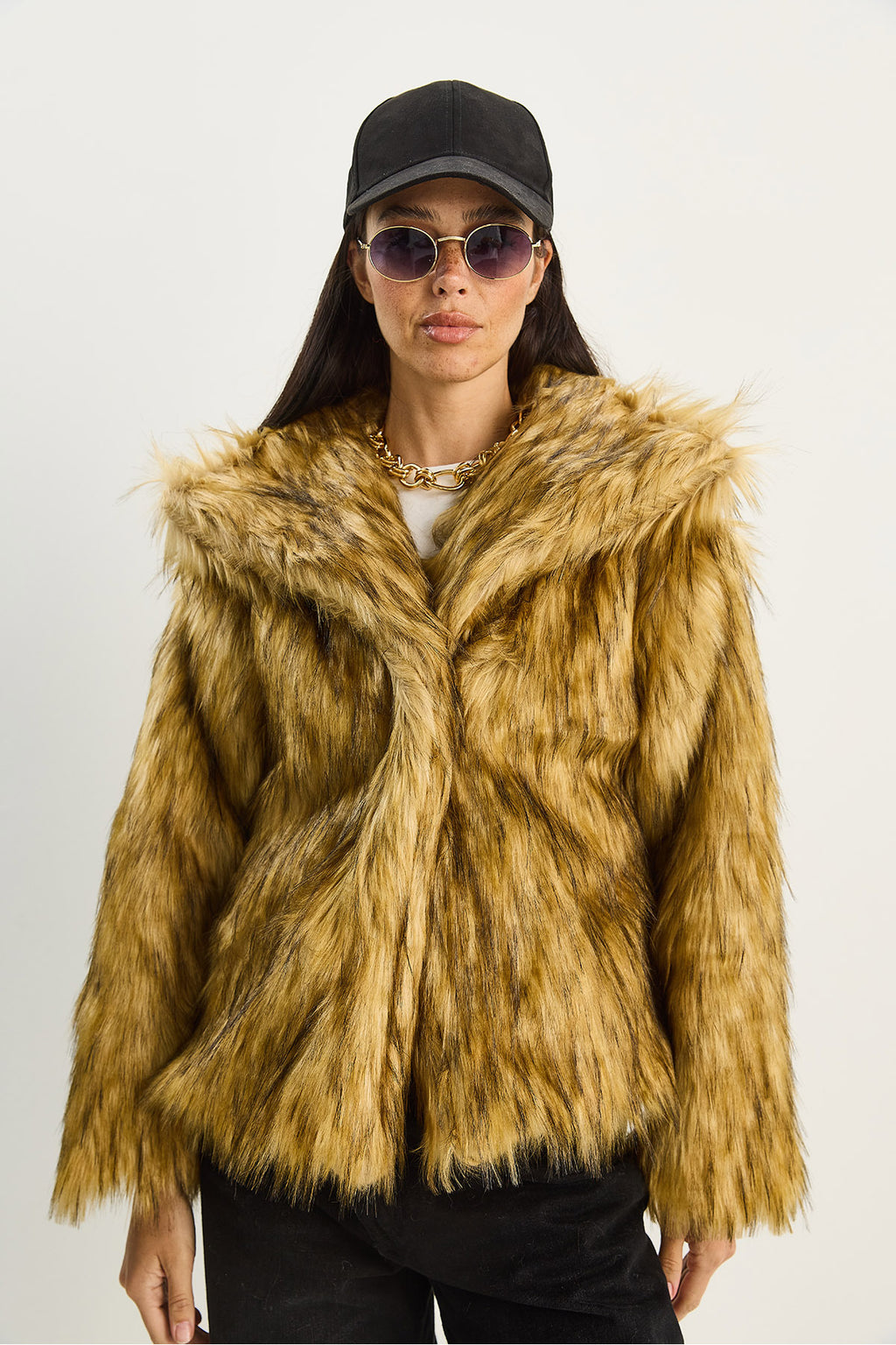 Women's Wide Collar Lined Short Premium Faux Fur Jacket 2770 60261574