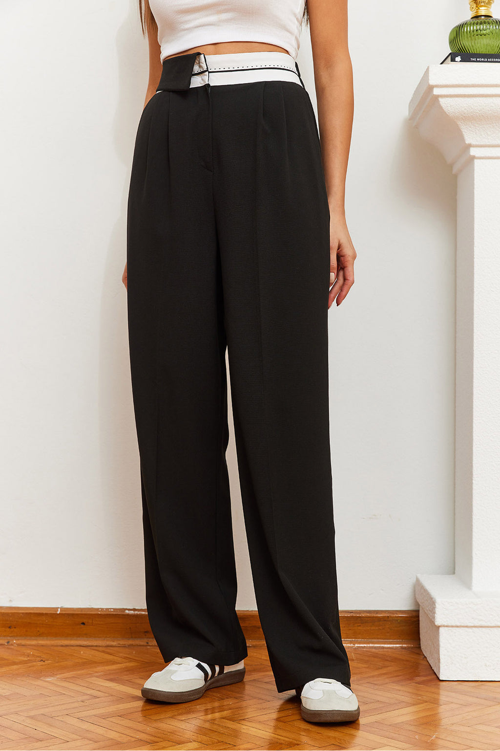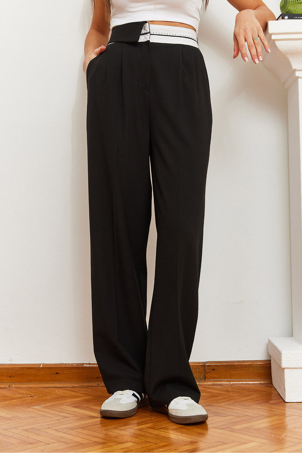 Women's Wide Leg Asymmetrical Waist Buttoned Palazzo Trousers 60361004