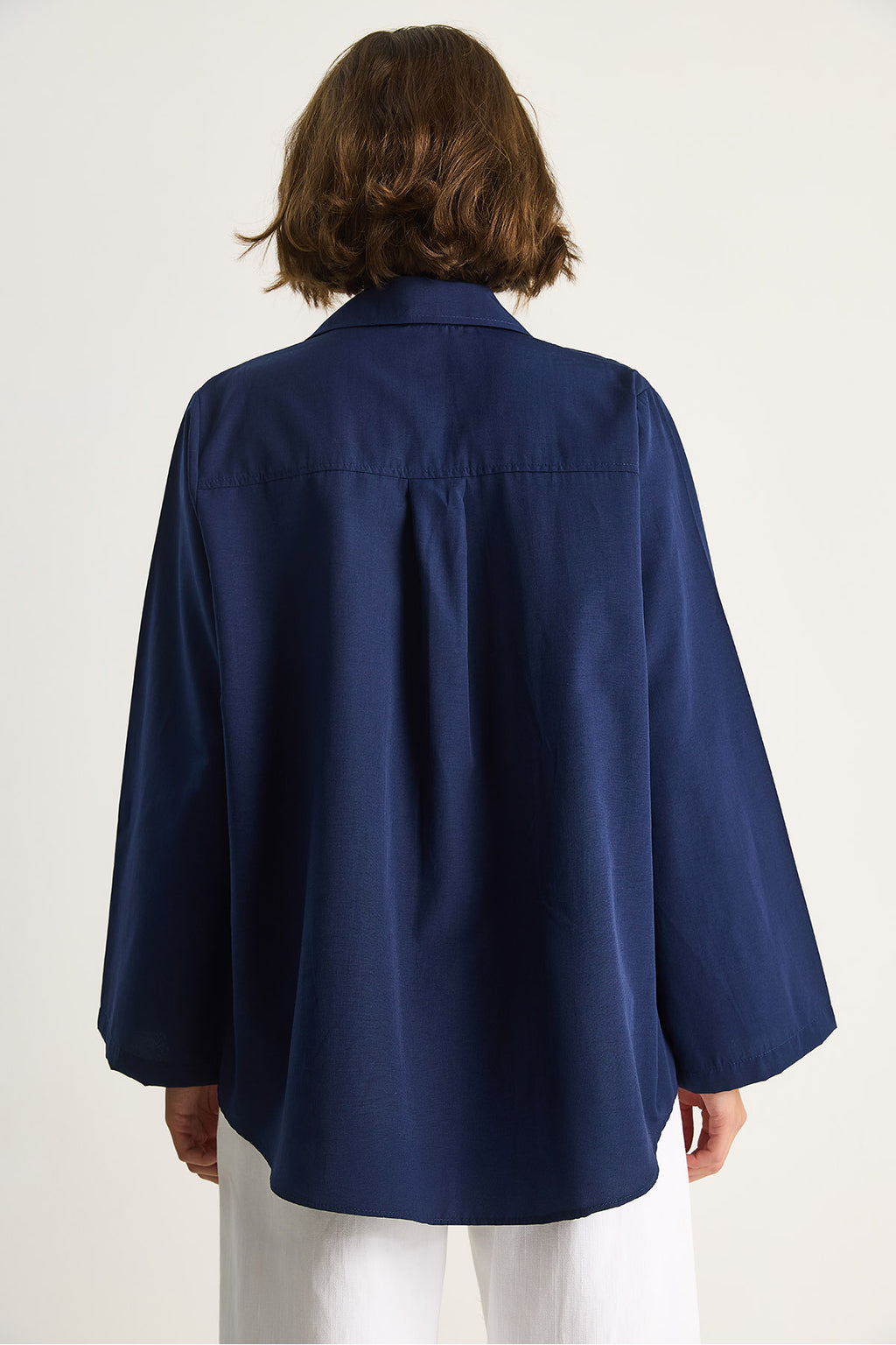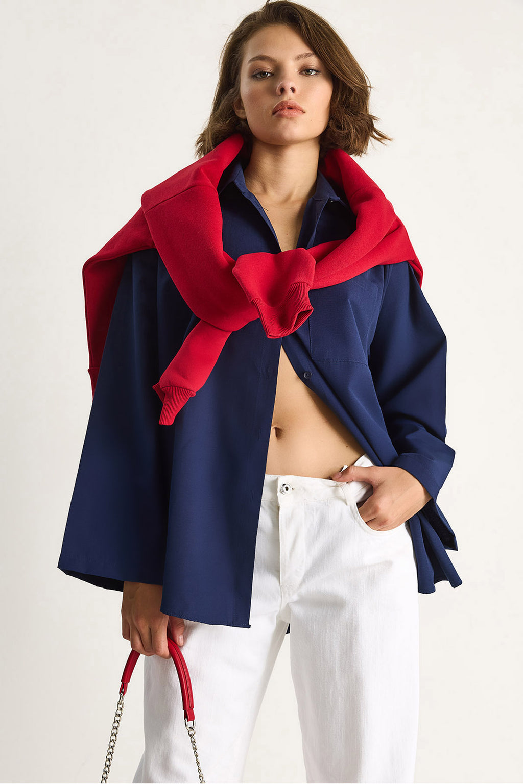 Women's Wide Sleeve Single Pocket Detailed Oversize Basic Poplin Shirt 2144 60284103