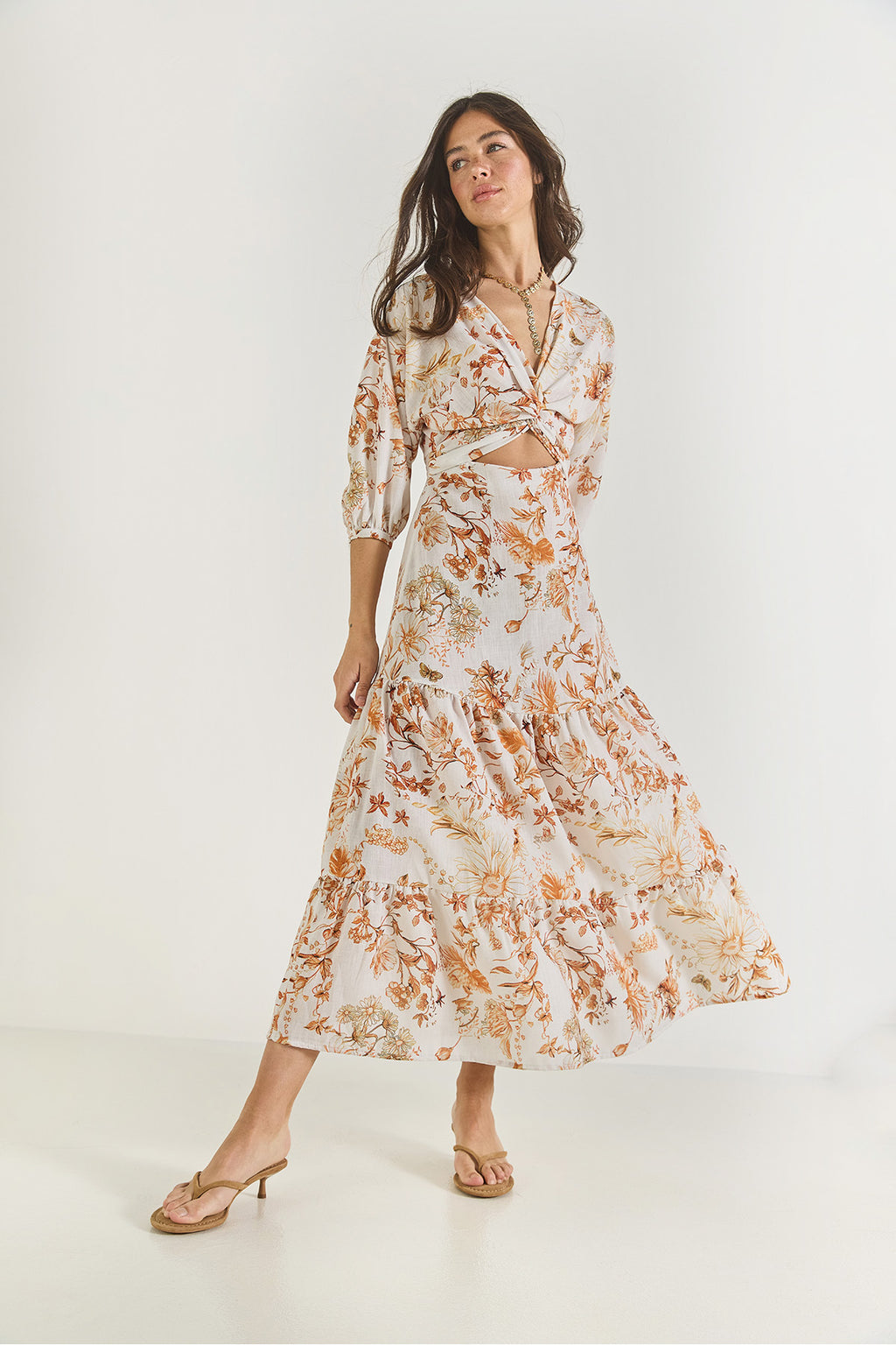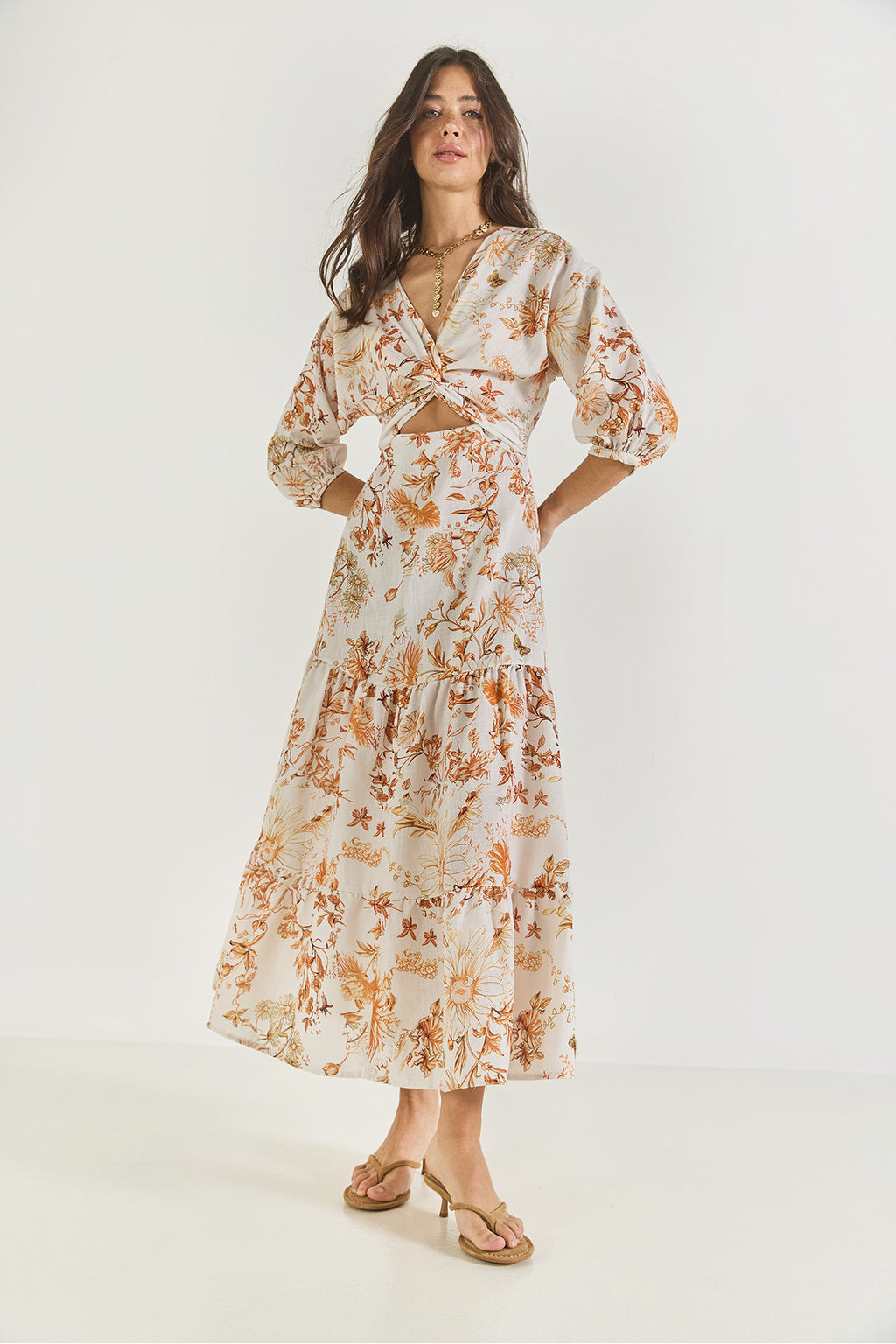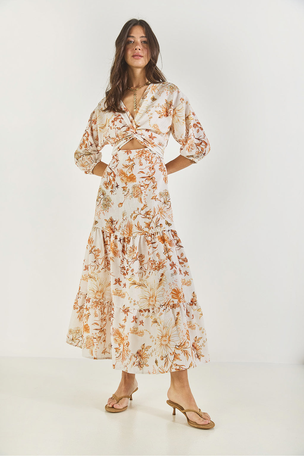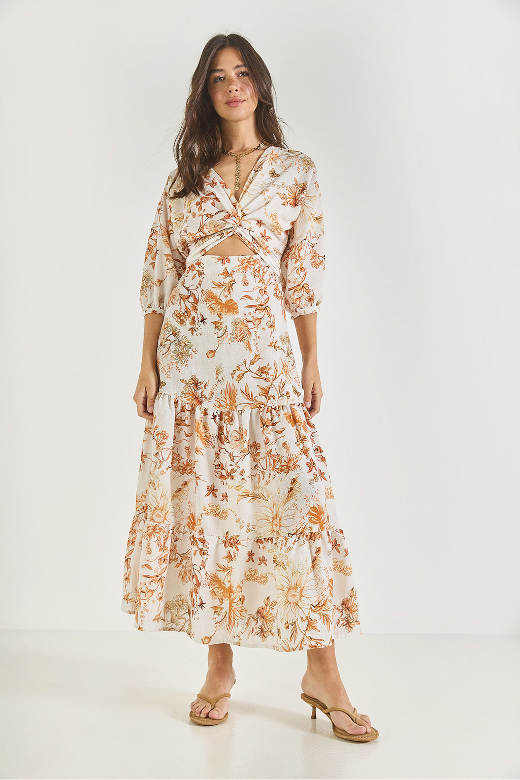 Women's Window Detailed Patterned Long Linen Dress 3025 60283273