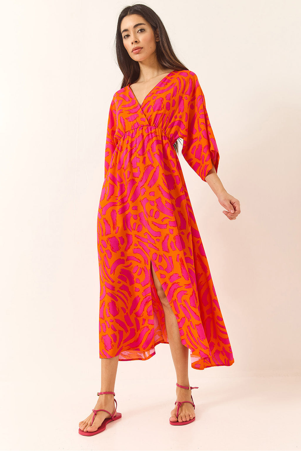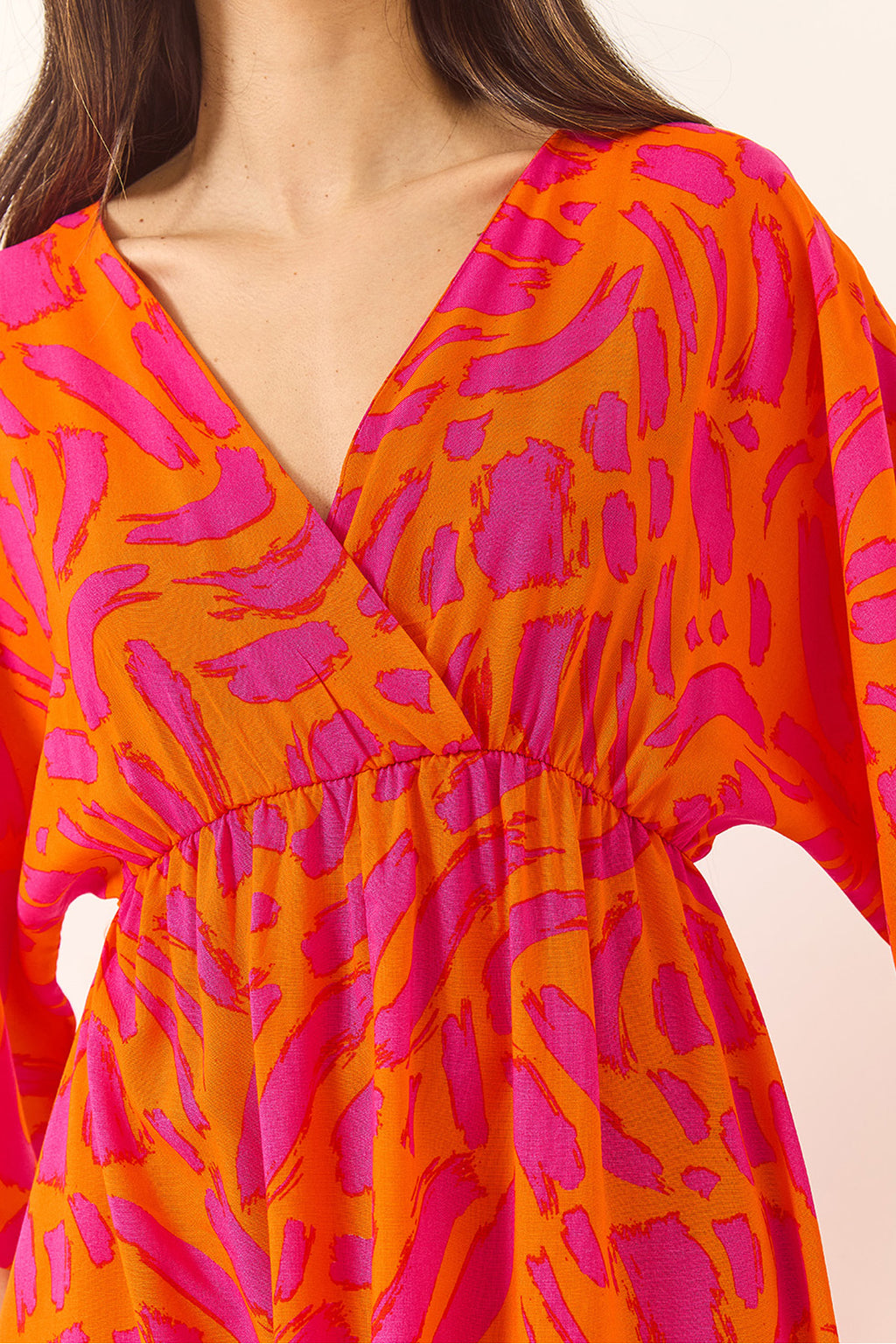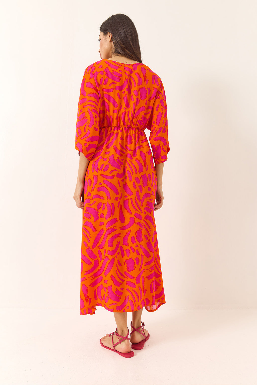 Women's Wrap Collar Waist Elastic Patterned Summer Viscose Dress 60283225
