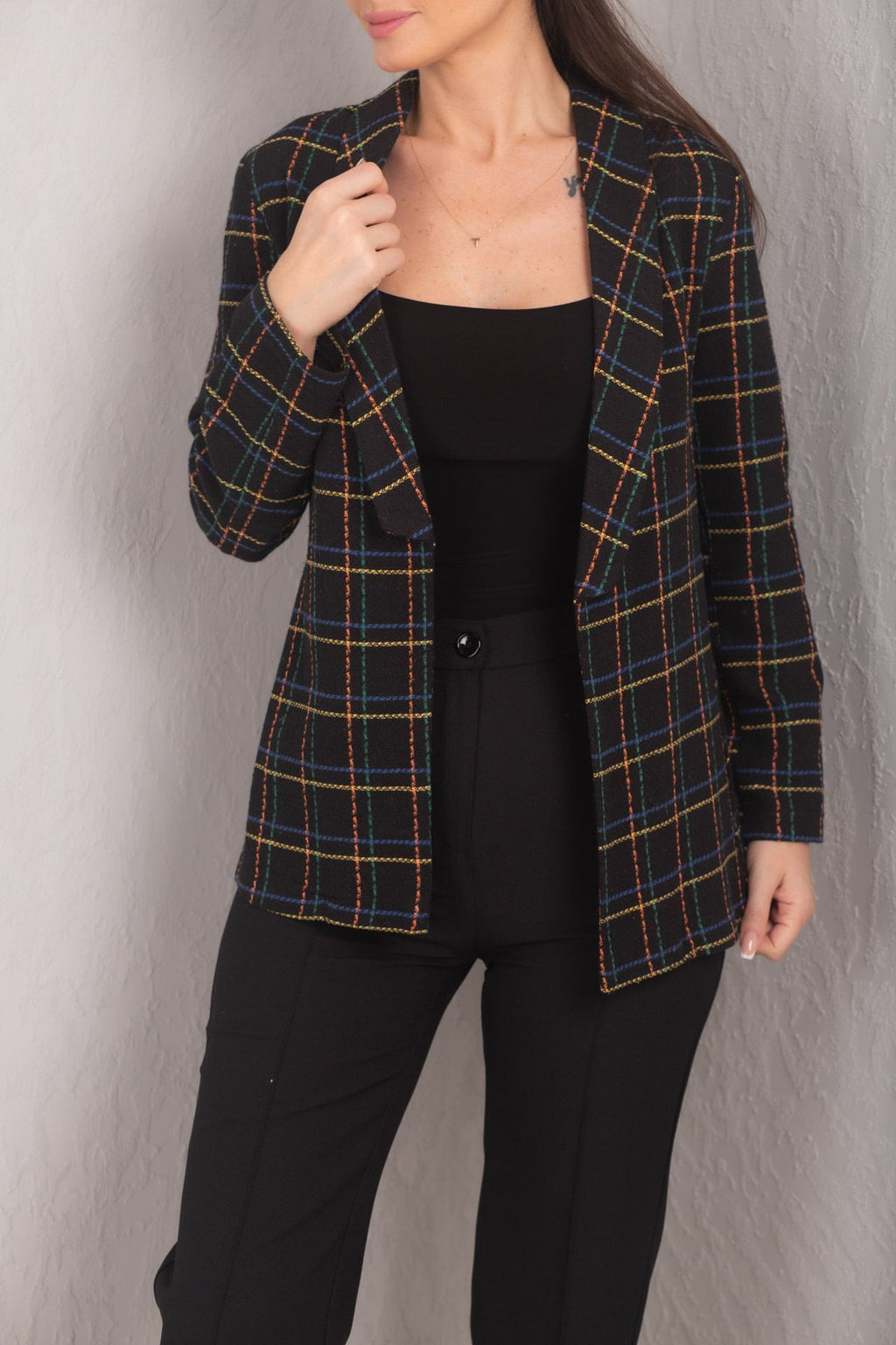 Women's Yellow Shawl Collar Plaid Pattern Tweed Jacket ARM-24K001048