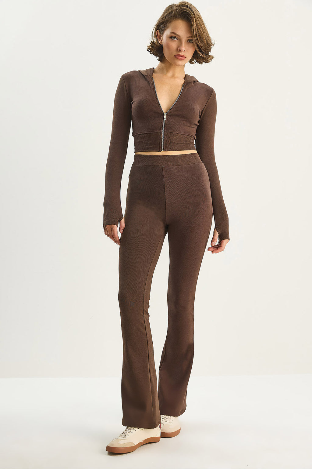 Women's Zippered Long Sleeve Crop Top Lightweight Flare Leg Tights 2180 60283622