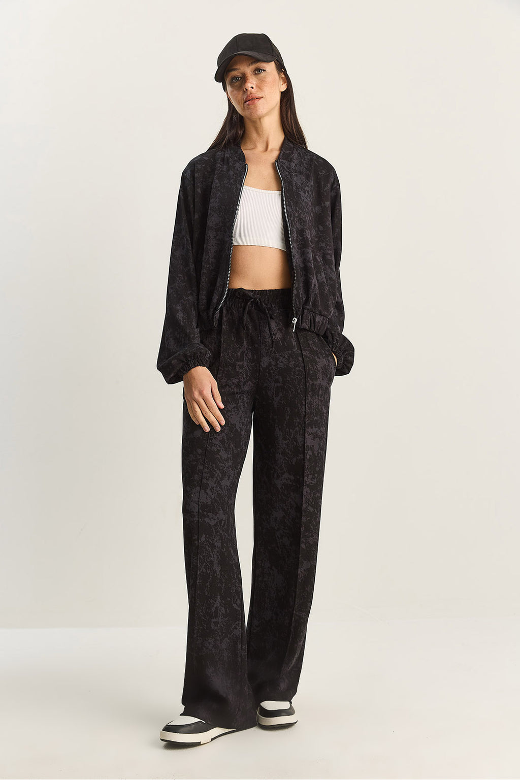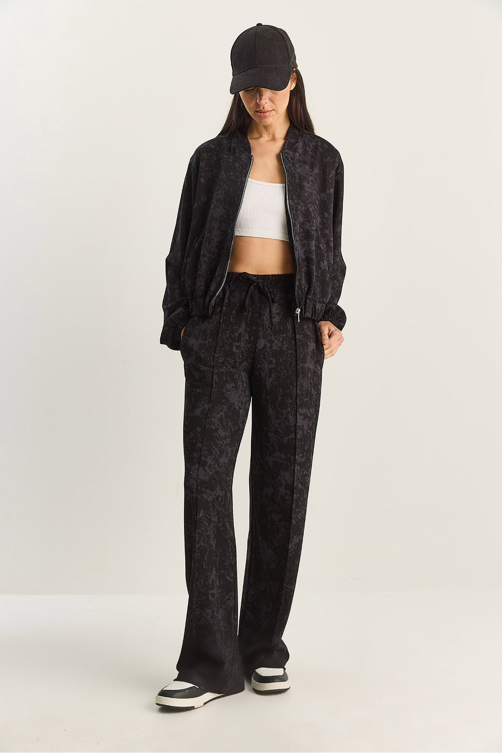 Women's Zippered Patterned Top-Bottom Knitted Suit 4098 60283846