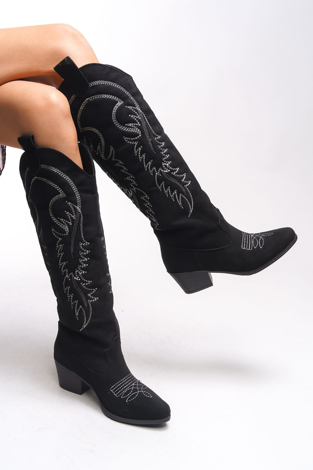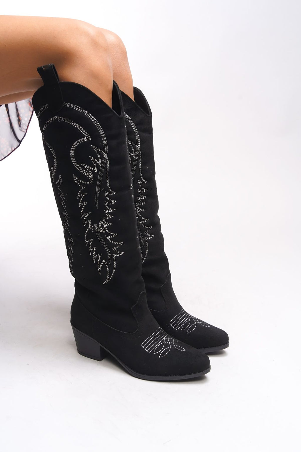 Zreidira Women's Embroidery Western Boots 001290 Black Suede