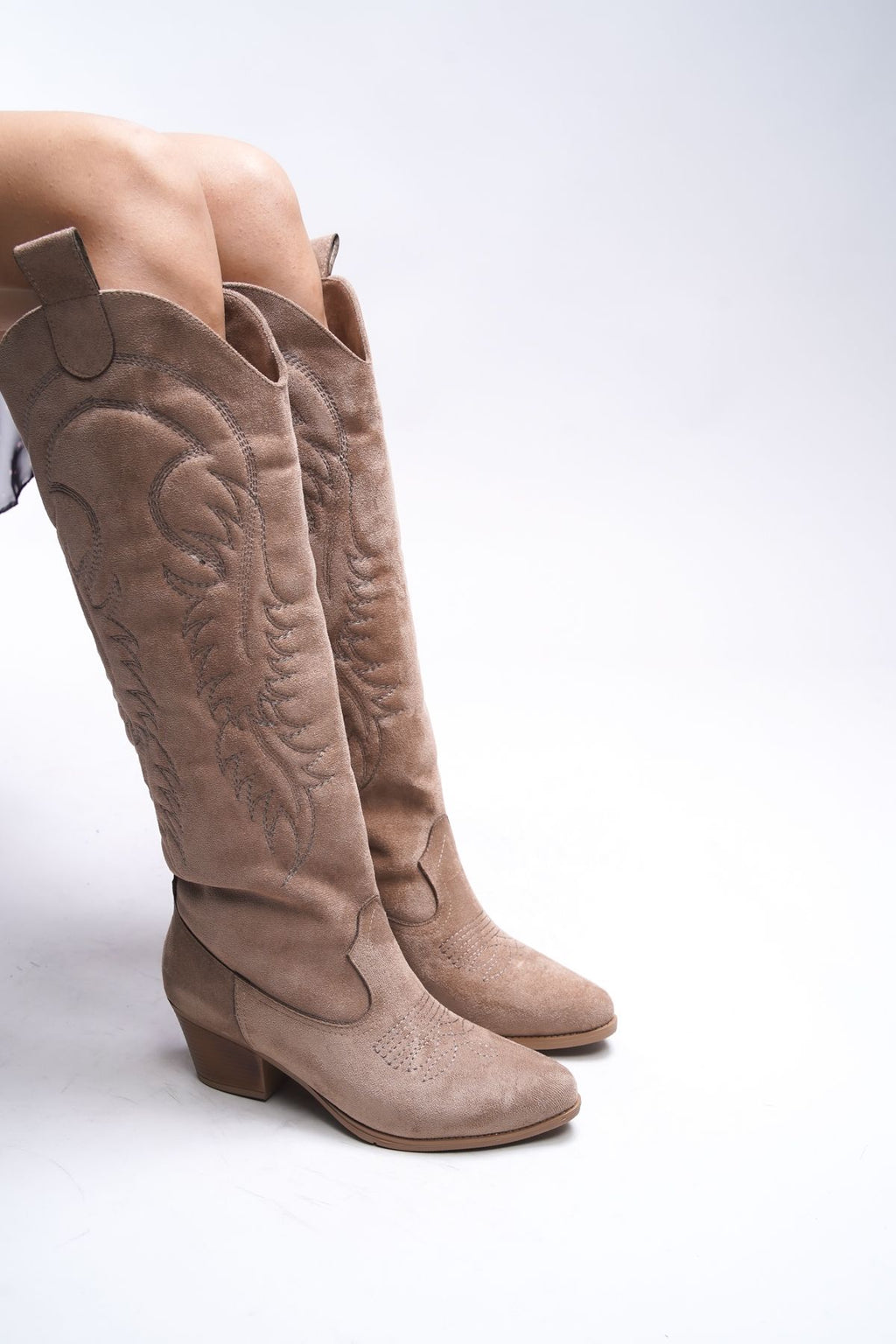 Zreidira Women's Embroidery Western Boots 001290 mink suede